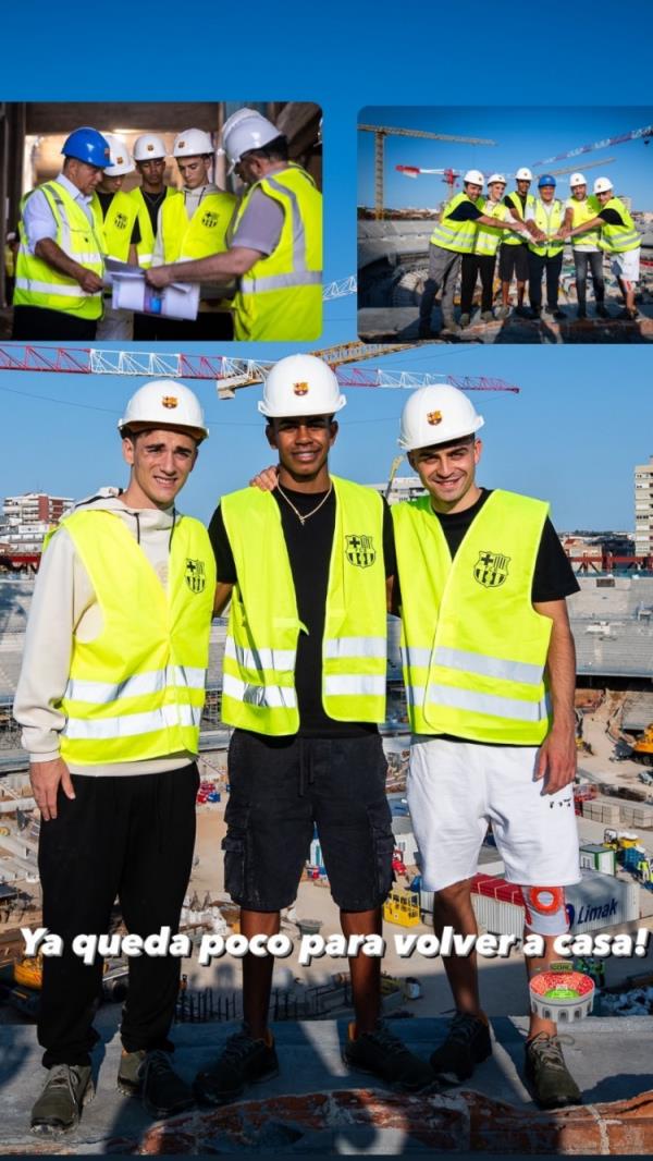 佩德里与加维、亚马尔与俱乐部高层一起参观了诺坎普改建现场,他在社交媒体上晒出照片,并配文:“我们很快就能回家了!”